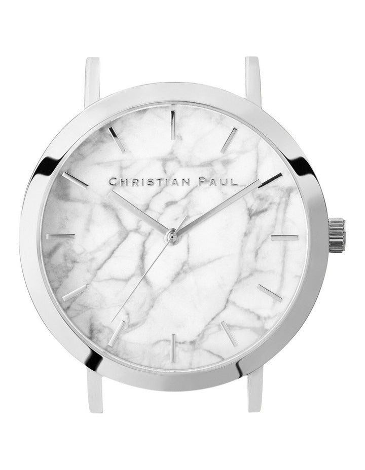 CHRISTIAN PAUL 35MM WHITE MARBLE DIAL & SILVER CASE - MAR-WHI-SIL-35MM