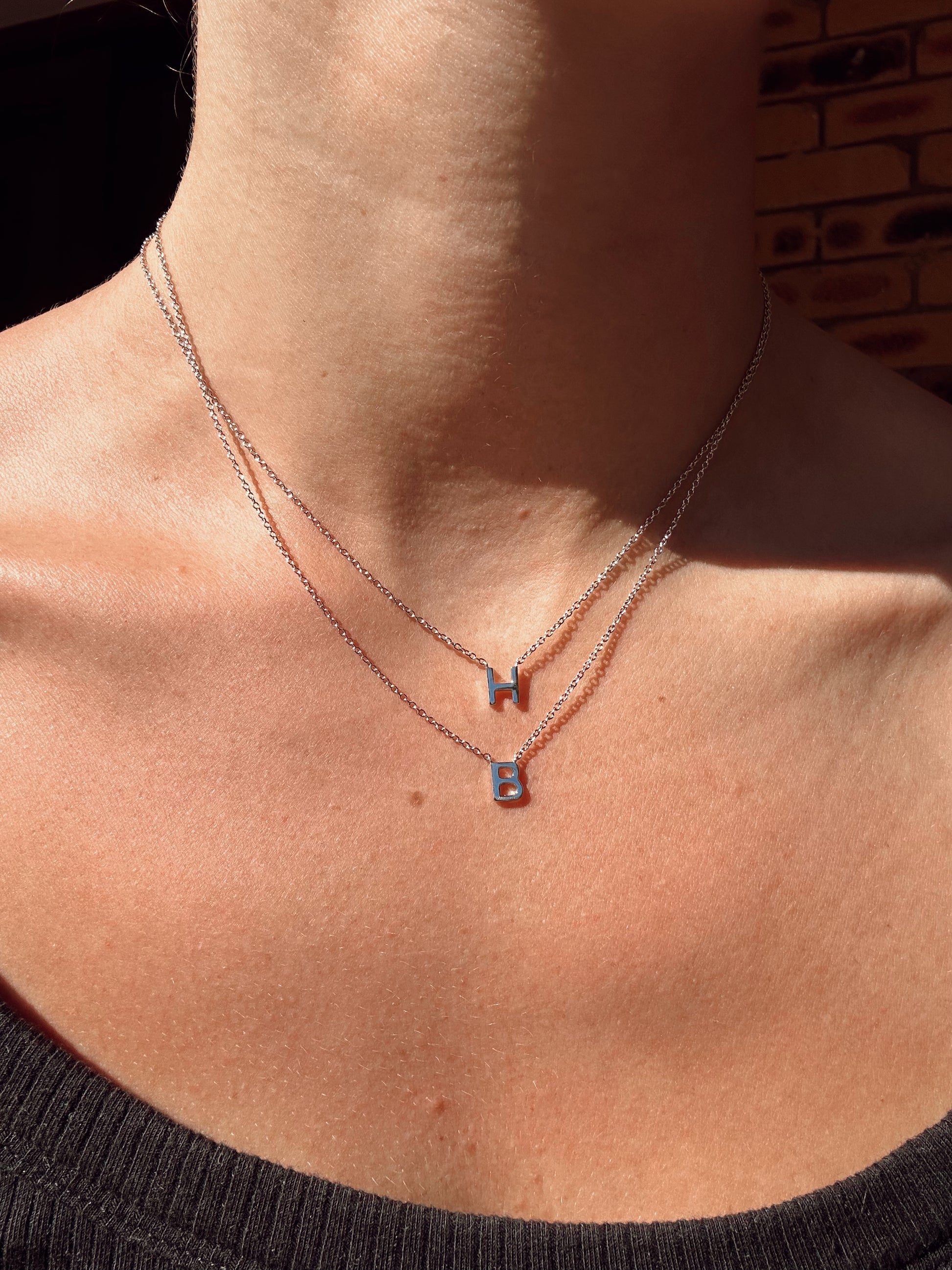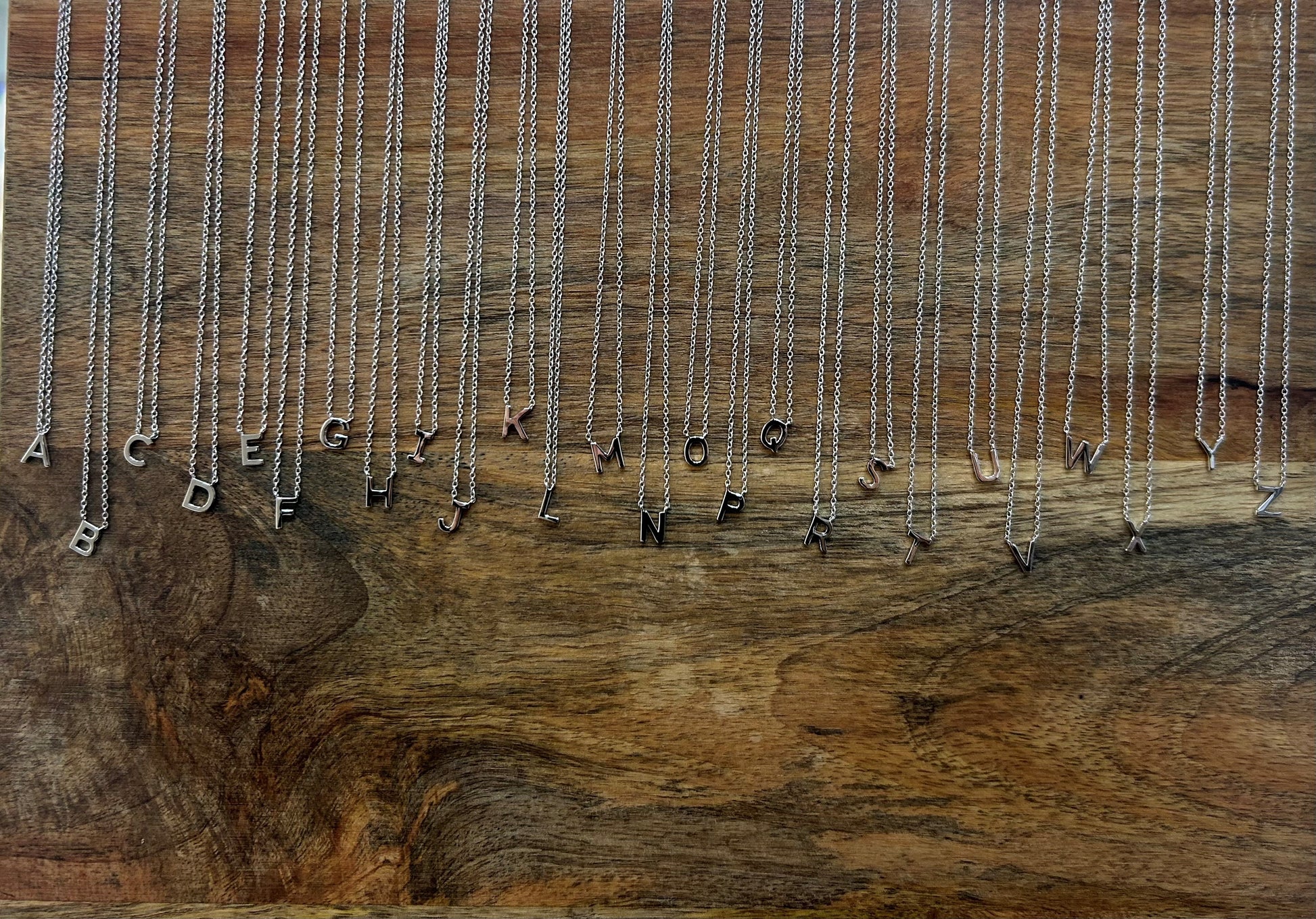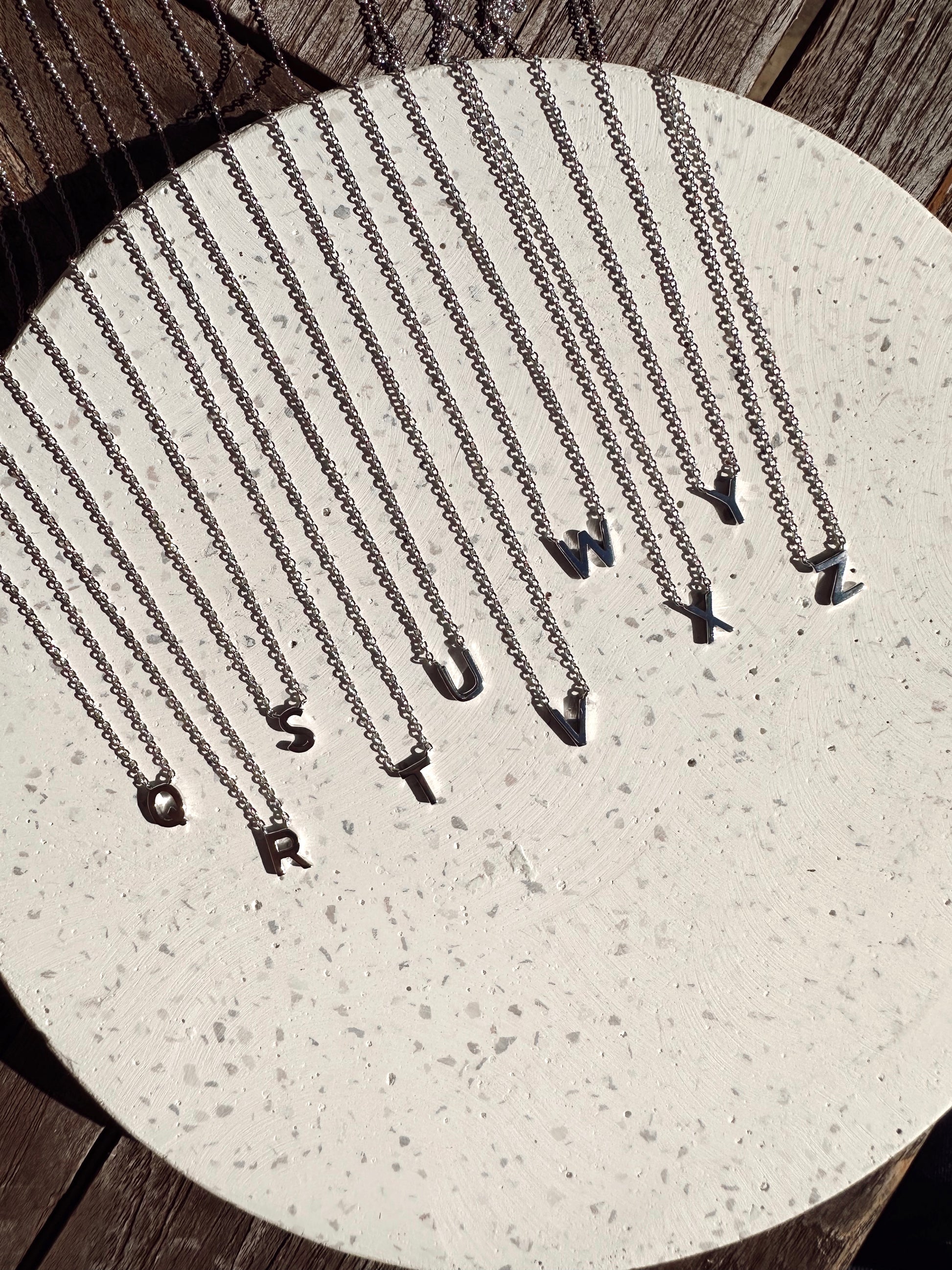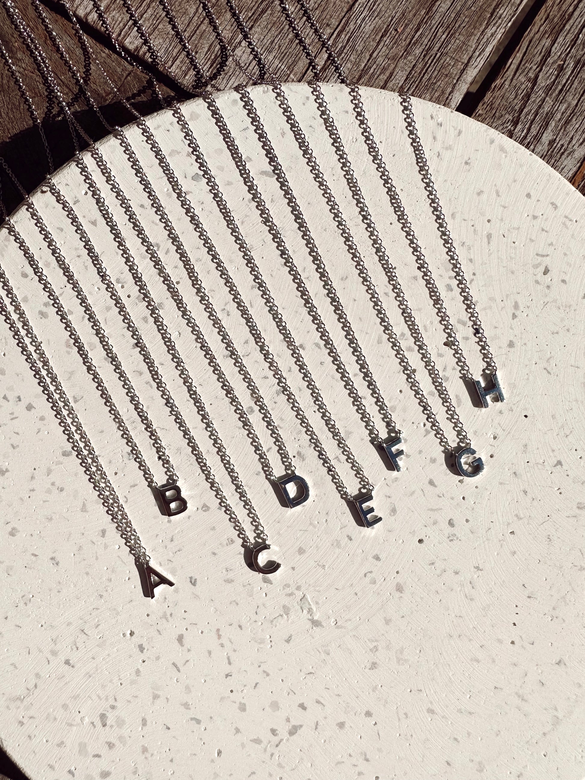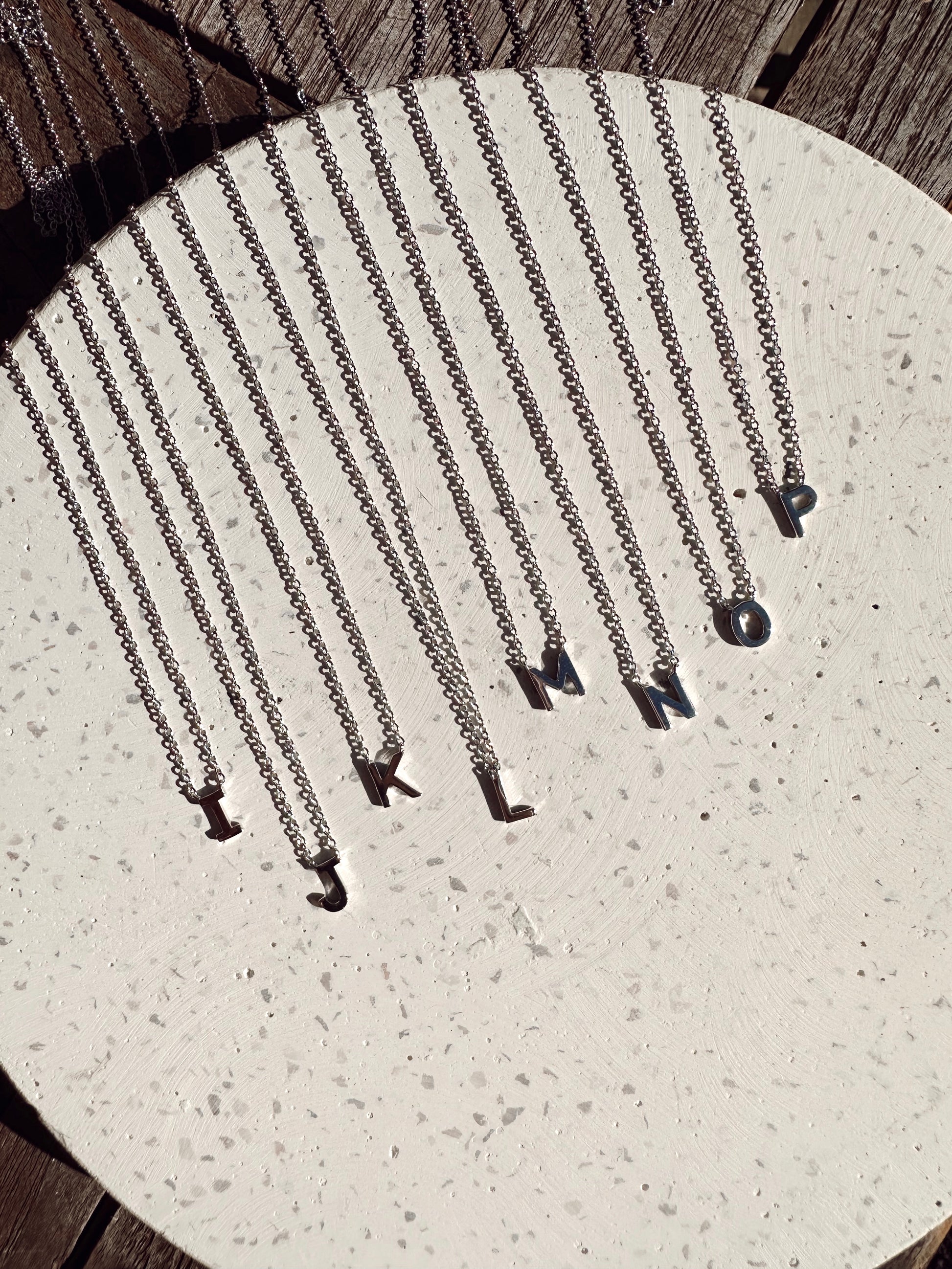 These initial necklaces are crafted from Sterling Silver. It's delicate chain that measures 40cm with a 5cm extender for a customisable fit. Show off your initial or someone you love!