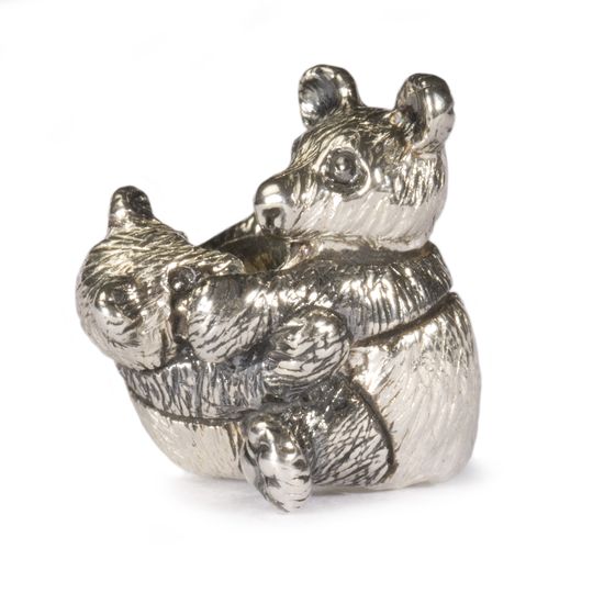 Playing together in blissful happiness, this Panda and her baby wrestle and tumble around the chain.