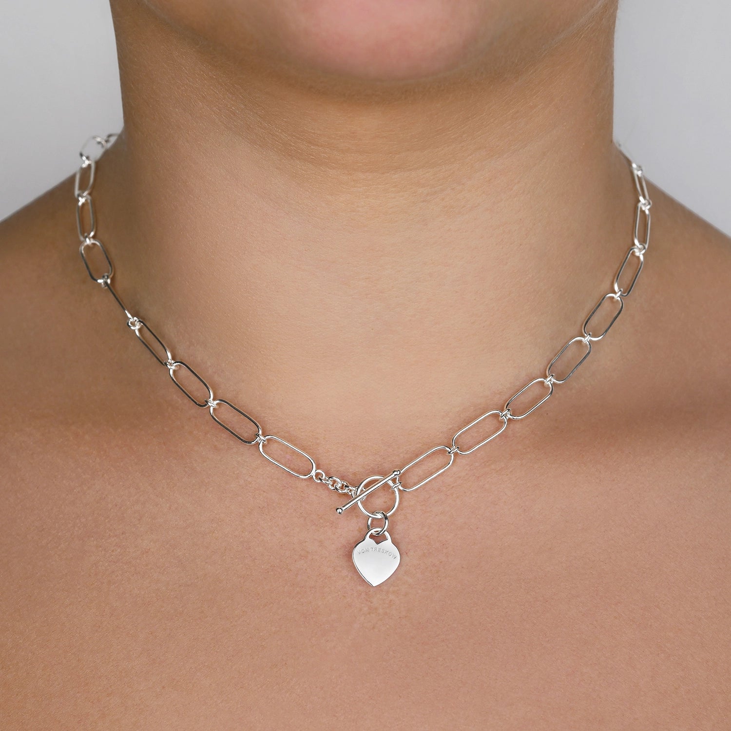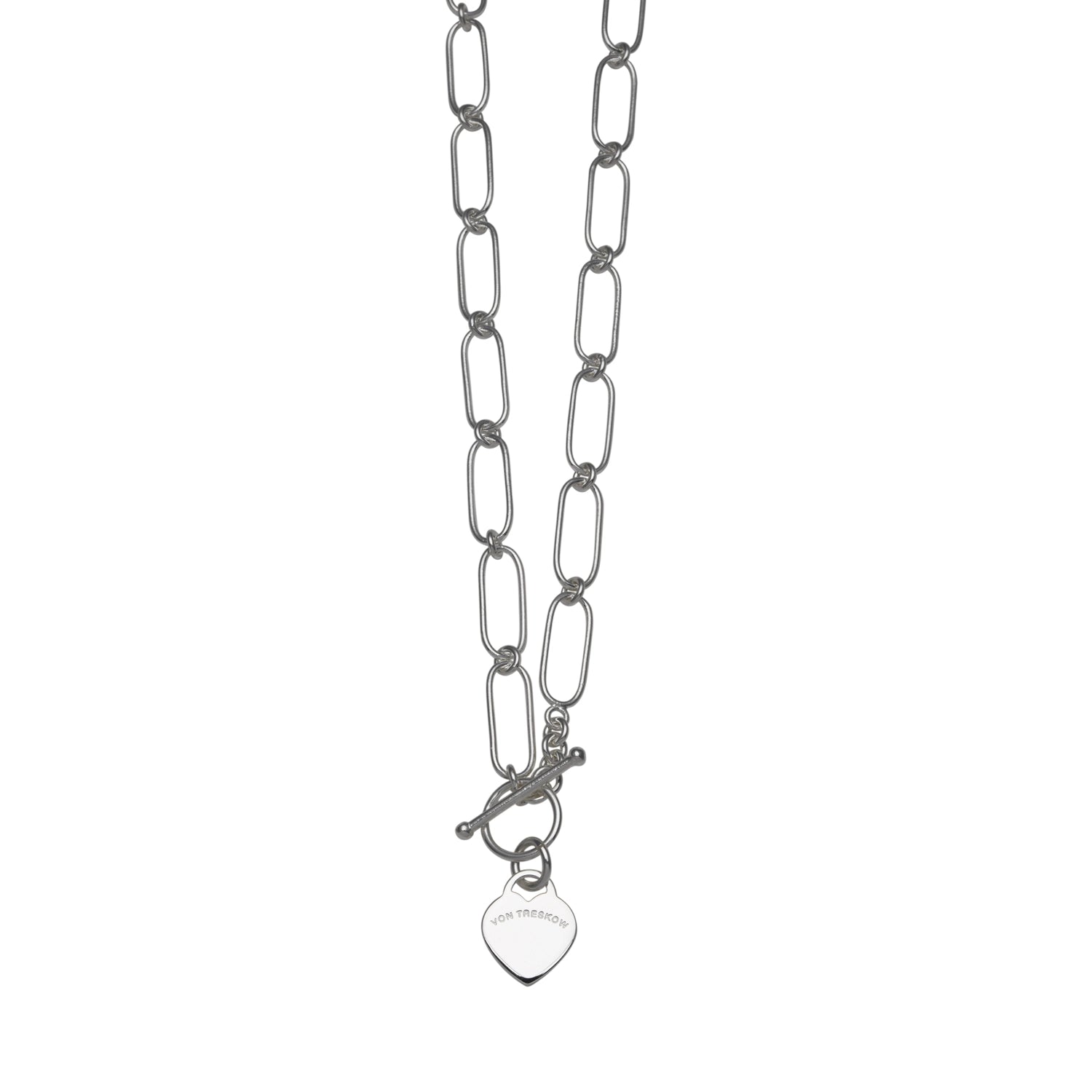 Fine open clip chain necklace with flat Von Treskow heart.